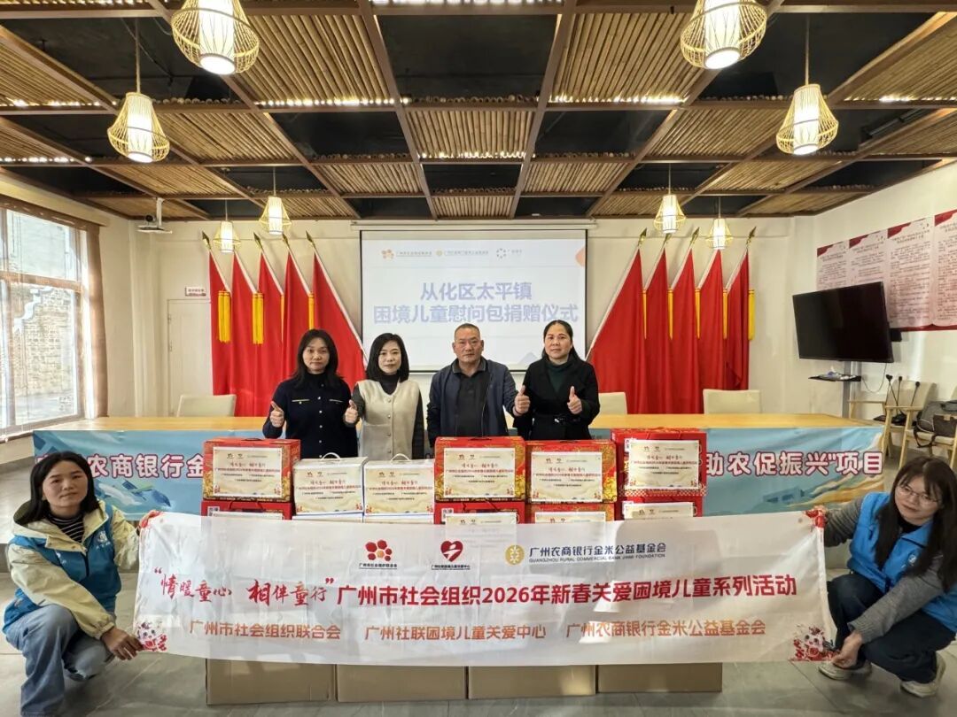 2026年1月29日上午,由广州市社会组织联合会(以下简称“广州社联”)和广州社联困境儿童关爱中心(以下简称“关爱中心”)主办的“情暖童心 相伴童行”广州市社会组织2026年新春关爱困境儿童系列活动走进从化区。活动在从化区太平镇党群服务中心举行捐献仪式。广州市从化区太平镇人民政府副镇长马建佳,广州社联常务副秘书长、关爱中心秘书长庄秀英,广州农商银行从化支行经理黄嘉文黄金配资开户官网,从化区未成年人保护中心主任邱志华出席活动。