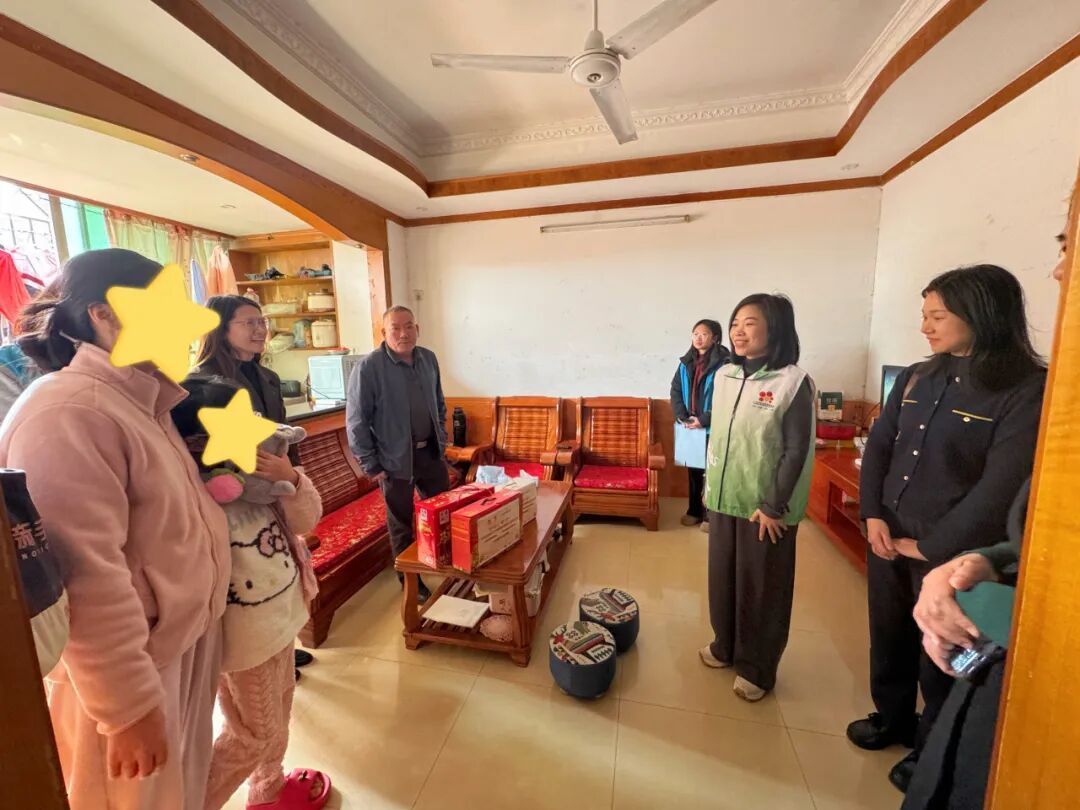 仪式结束后,在马建佳副镇长带领下,慰问组一行人走访慰问了小胡和小刘两户困境儿童家庭。小胡今年9岁,为低保家庭,其母亲患有白血病,因身体虚弱无法工作,主要依靠低保金和父亲工资维持医药费和日常开支。另一户,小刘今年11岁,同样为低保家庭,父亲离世,主要依靠低保金和母亲工资维持日常生活,经济压力大。慰问组人员在了解各家庭情况后,纷纷表示同情和感叹,为两个家庭送上慰问品及新春的美好祝福,鼓励孩子们要勇敢面对生活困境,保持乐观向上的心态,遇到困难及时向镇政府反映。
